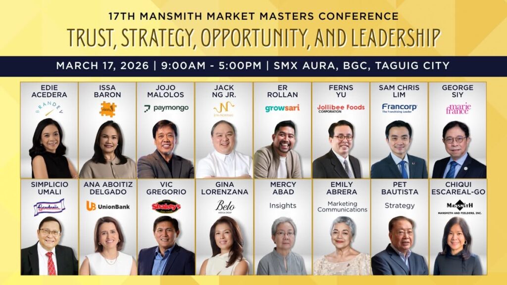 Explore ideas about trust, opportunity, strategy, and leadership in person at the 17th Mansmith Market Masters Conference on March 17, 2026 in SMX Aura. For more information, visit: www.marketmastersconference.com