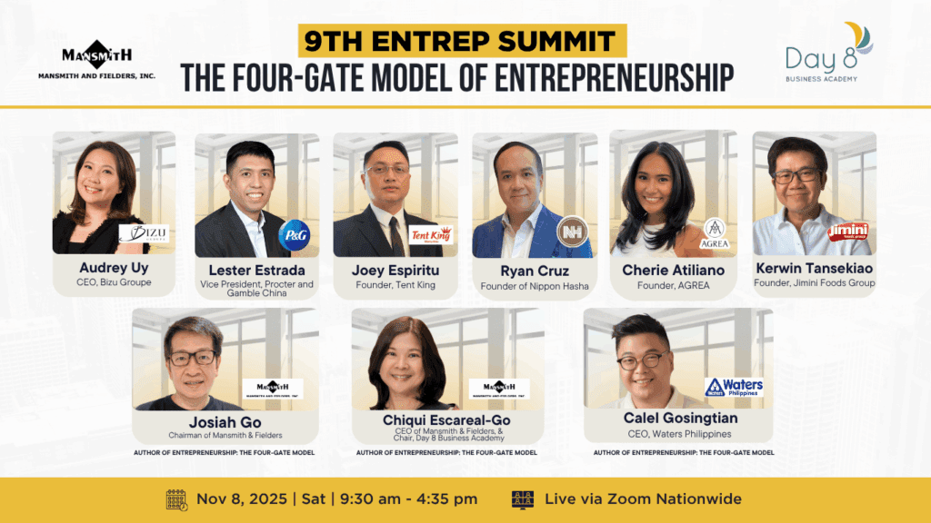 Plus—get a FREE copy of the #1 best-selling entrepreneurship book of 2024, Entrepreneurship: The Four-Gate Model (by Josiah Go, Chiqui Escareal-Go, and Calel Gosingtian), when you join the summit!